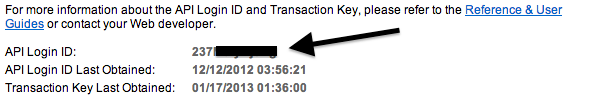 Locate your Authorize.net API Login ID and Transaction Key. The API Login ID can be found by navigating from the Authorize.Net Home Page --> Account Tab --> API Login and Transanction Key.