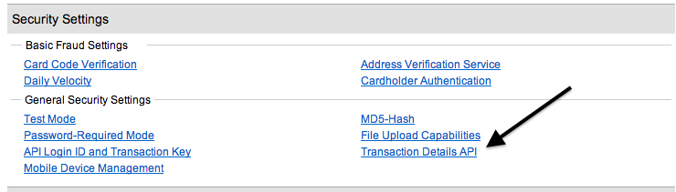 Enable the Transaction Details API. This would allow Subuno account to pull the order details from Authorize.Net. Go to the Transaction Details API page and click on "Enable Transaction Details API" if it is not already enabled.