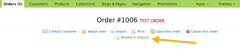 To test the installation, find an old order within Shopify and click on "Review in Subuno".
